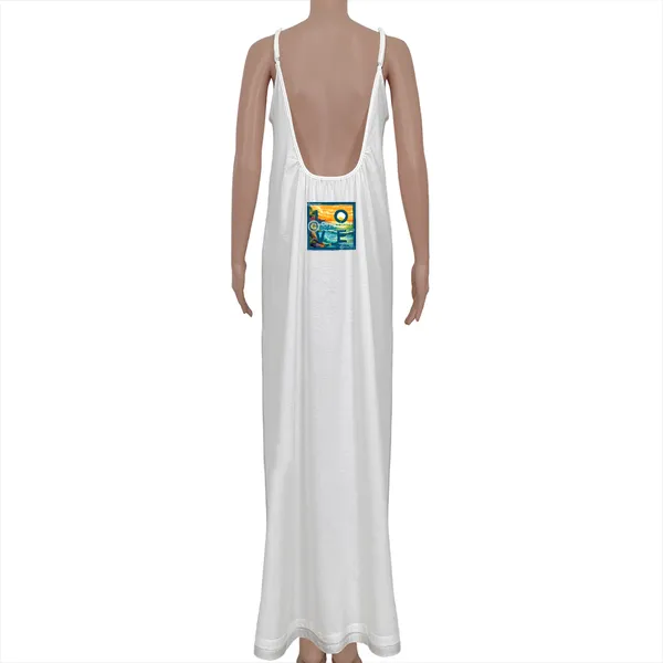 Its unique design flatters your silhouette with a plunging back that will capture everyone’s attention. Perfect for an elegant evening, pair it with high-heeled sandals for a cocktail party, or opt for a more relaxed look with refined flat shoes on warm summer days by the sea.