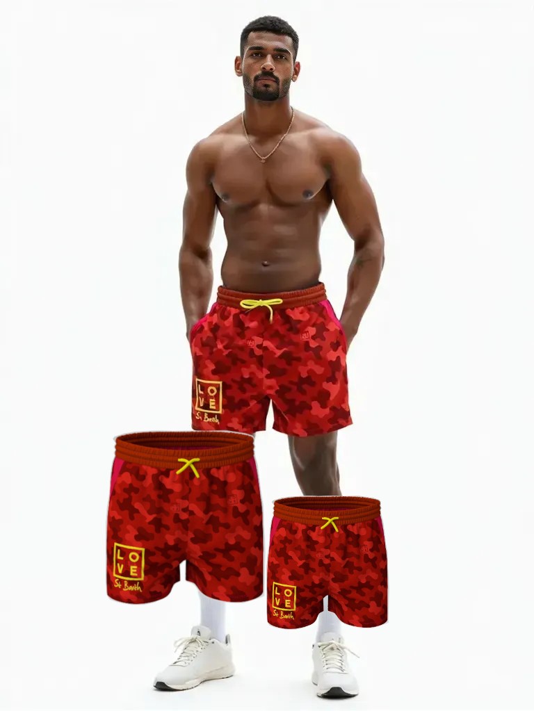 LOVE “Bahamas” Swim Shorts – Matching Duo for Father & Son | Lightweight Mesh with St Barth Print