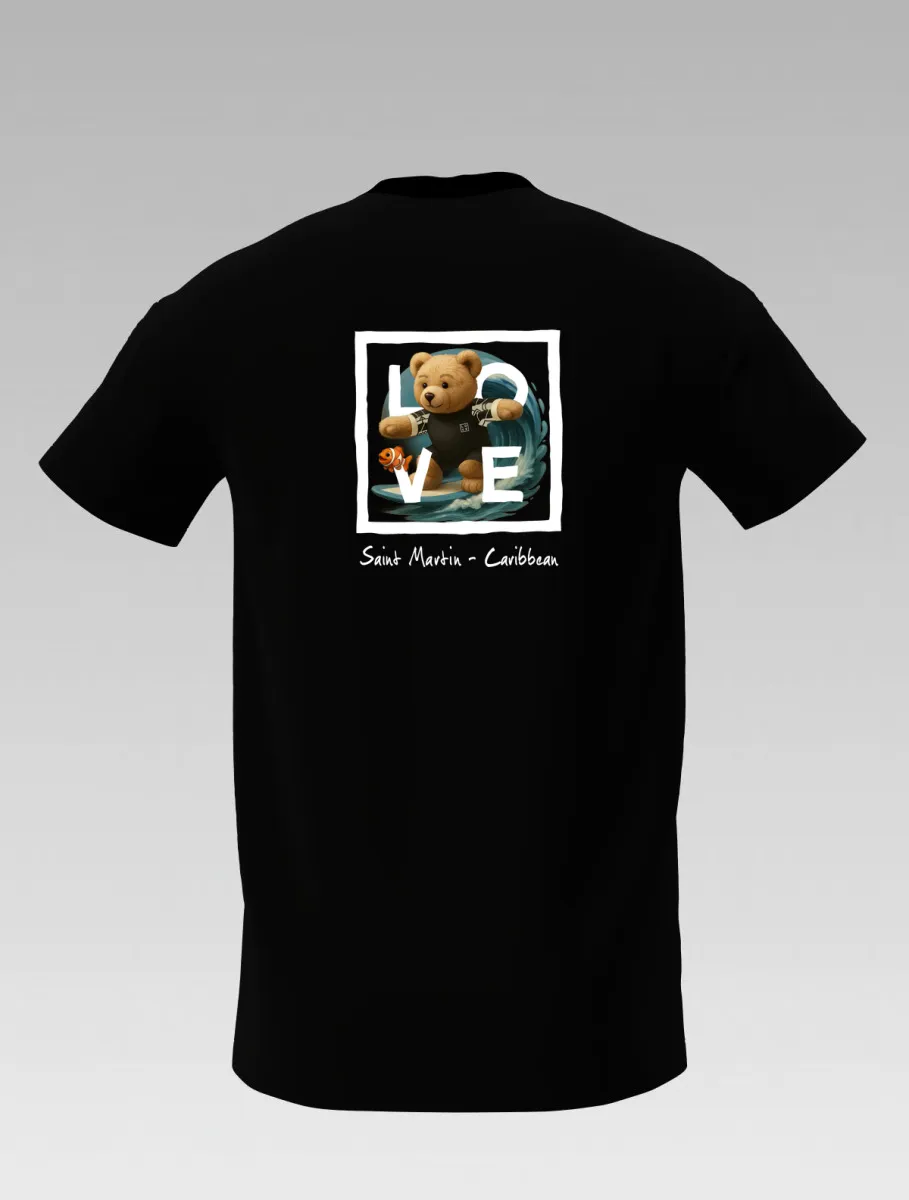 Black Kids’ T-shirt – Surfing Bear – Signature St Barth & St Martin – LOVE Edition