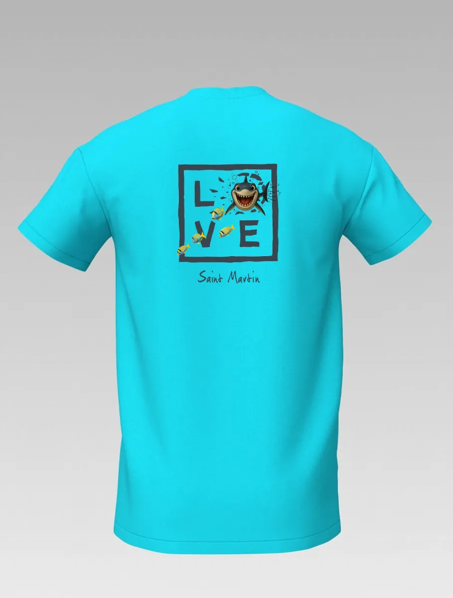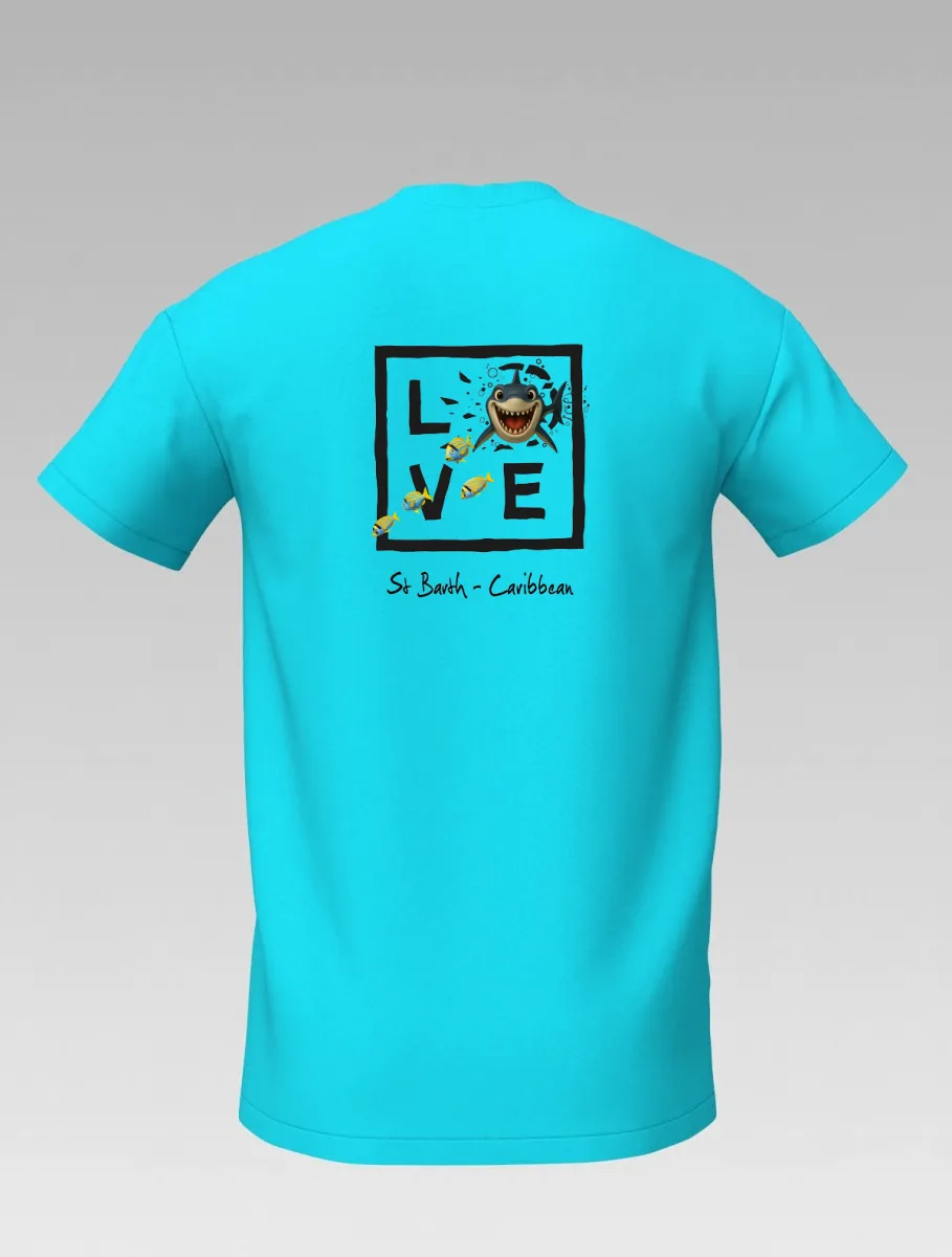 This turquoise T-shirt from St Barth & St Martin, part of the LOVE Shark line, brings the thrill of the ocean to life.