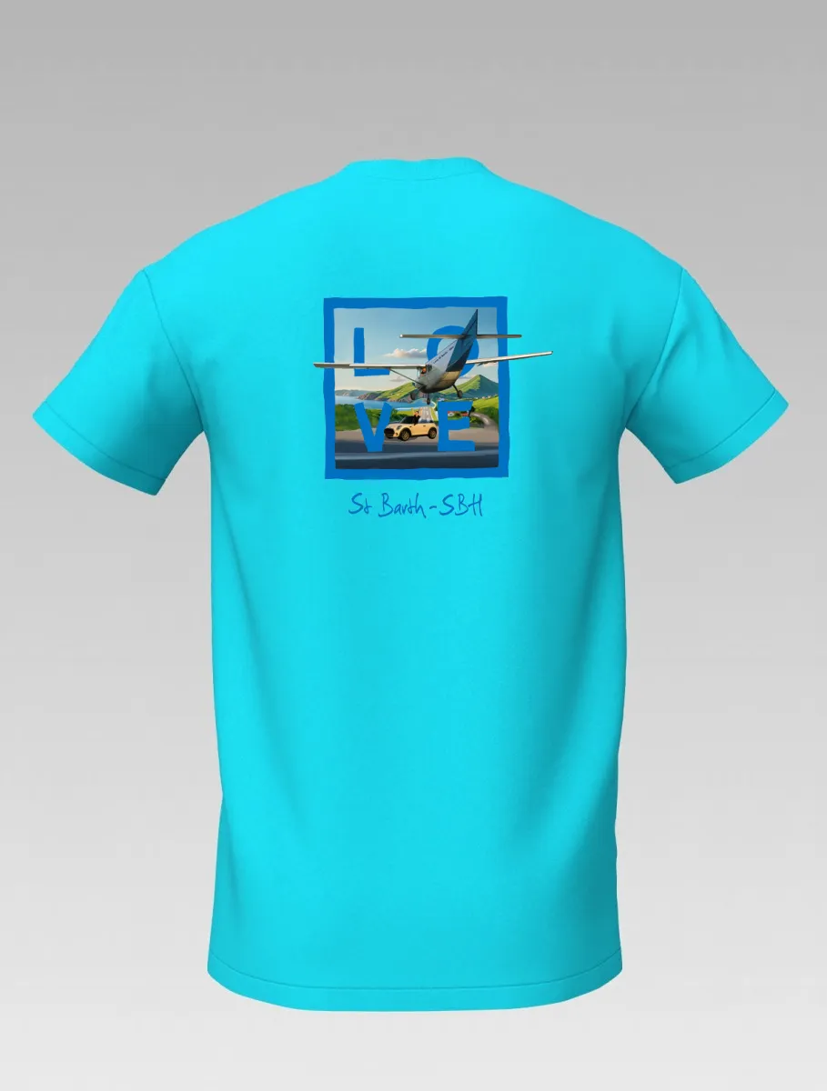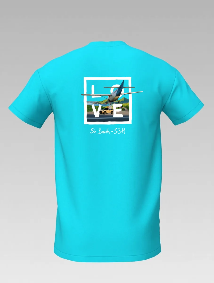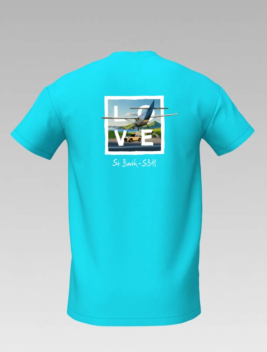 This turquoise T-shirt from St Barth, part of the LOVE Edition, celebrates the world-famous St Barth Airport, known for its breathtaking landings between sea and hills.