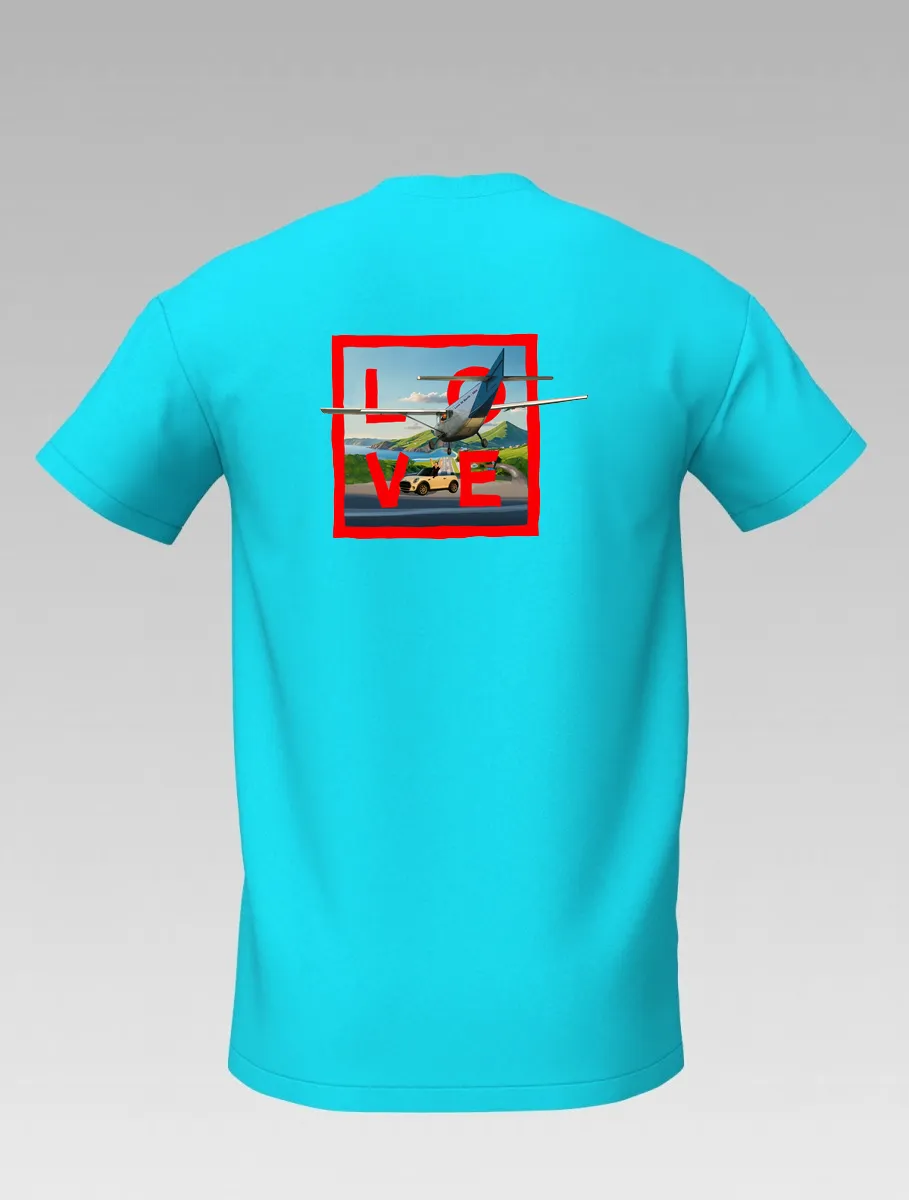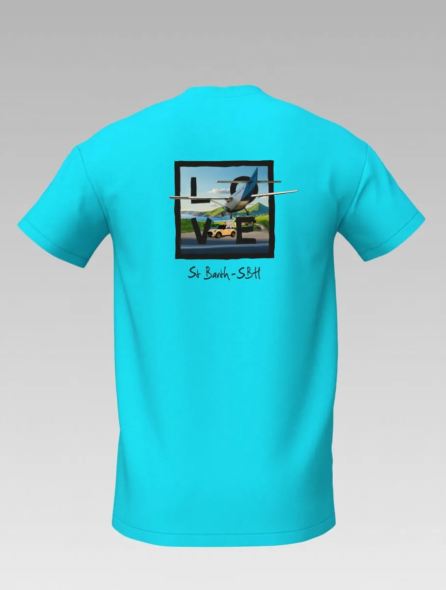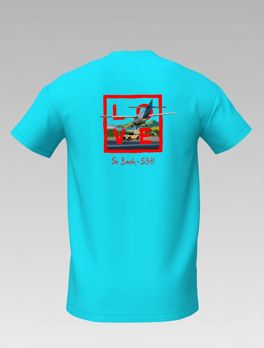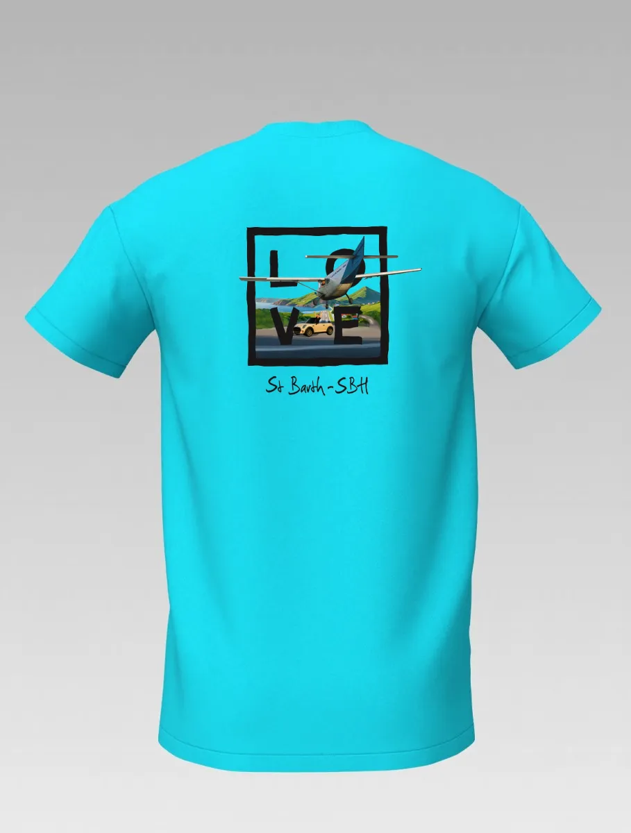 This turquoise T-shirt from St Barth, part of the LOVE Edition, celebrates the world-famous St Barth Airport, known for its breathtaking landings between sea and hills.
