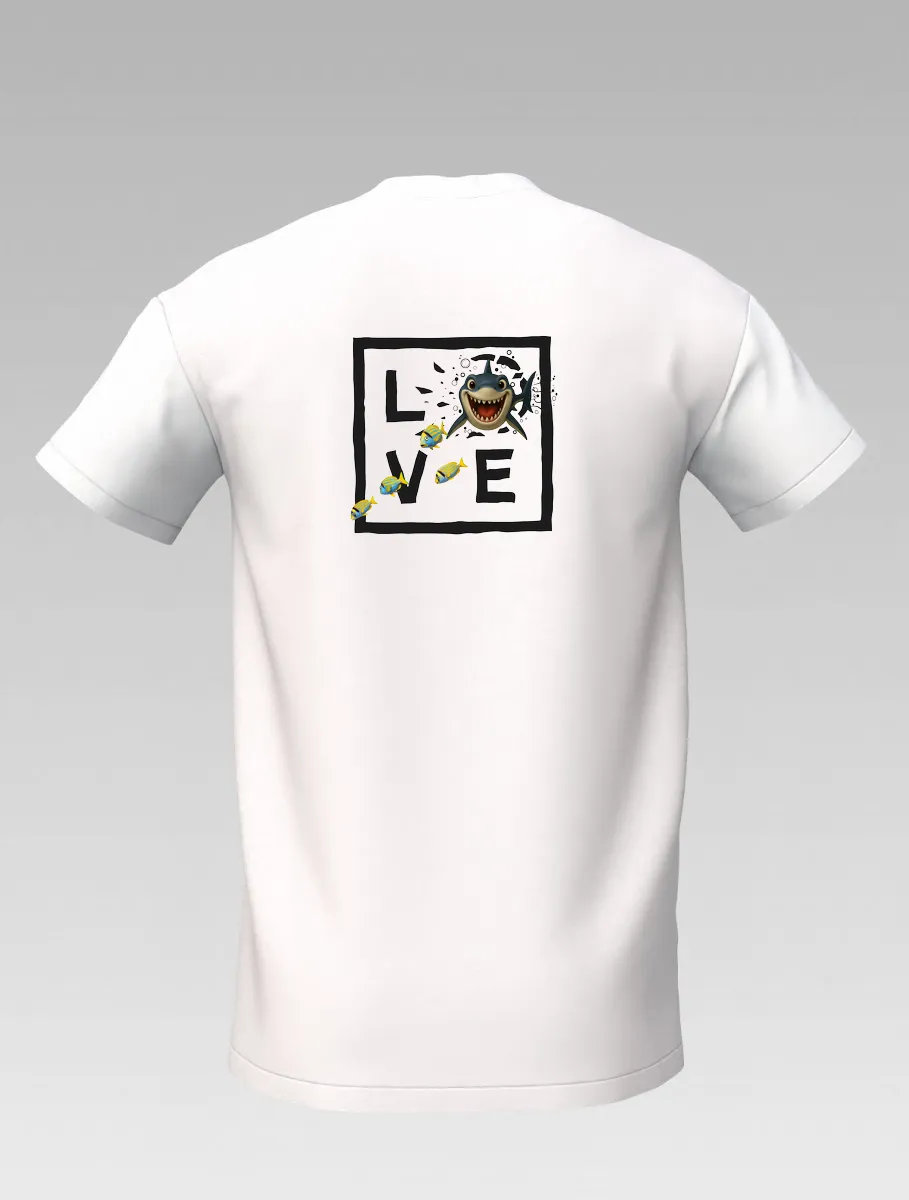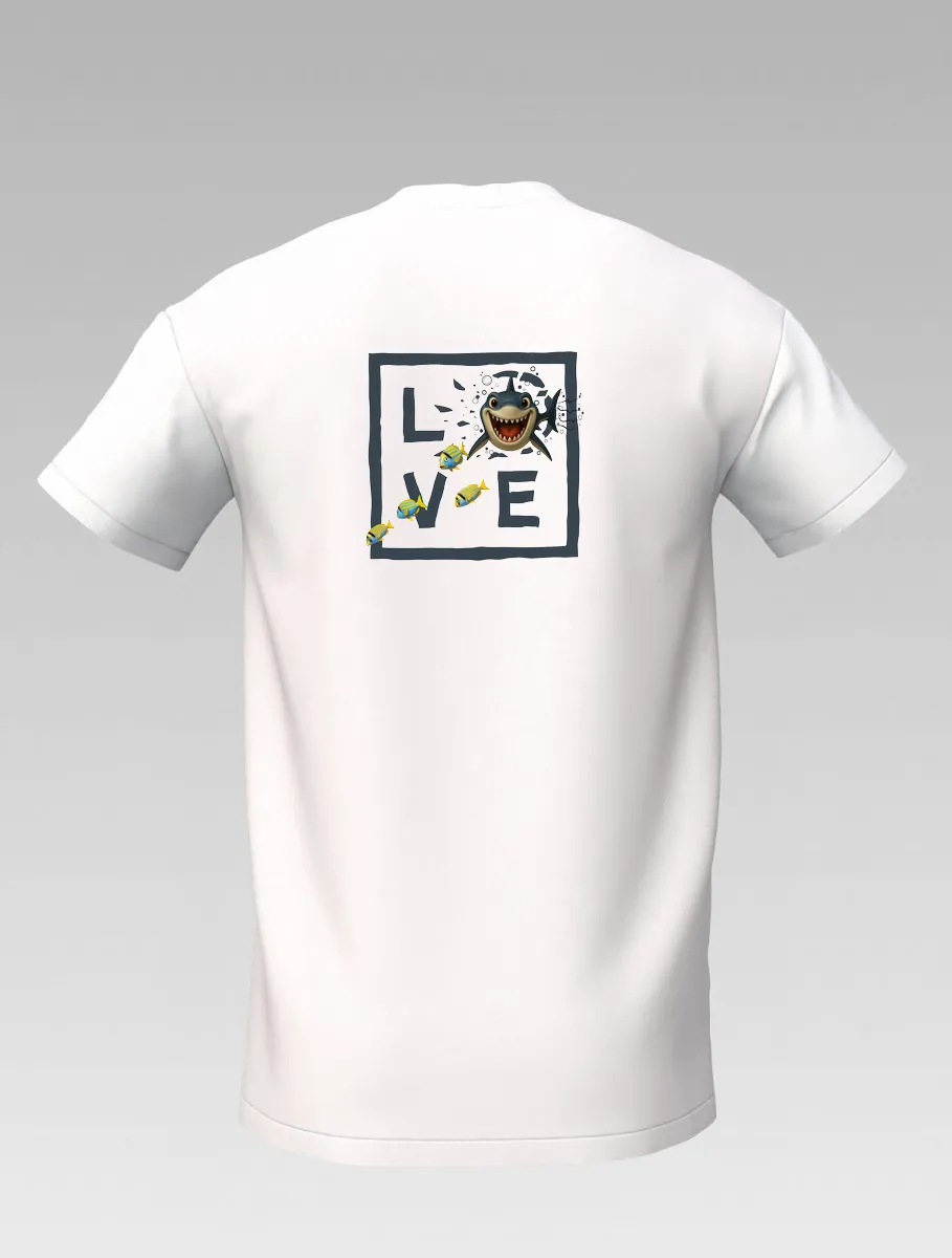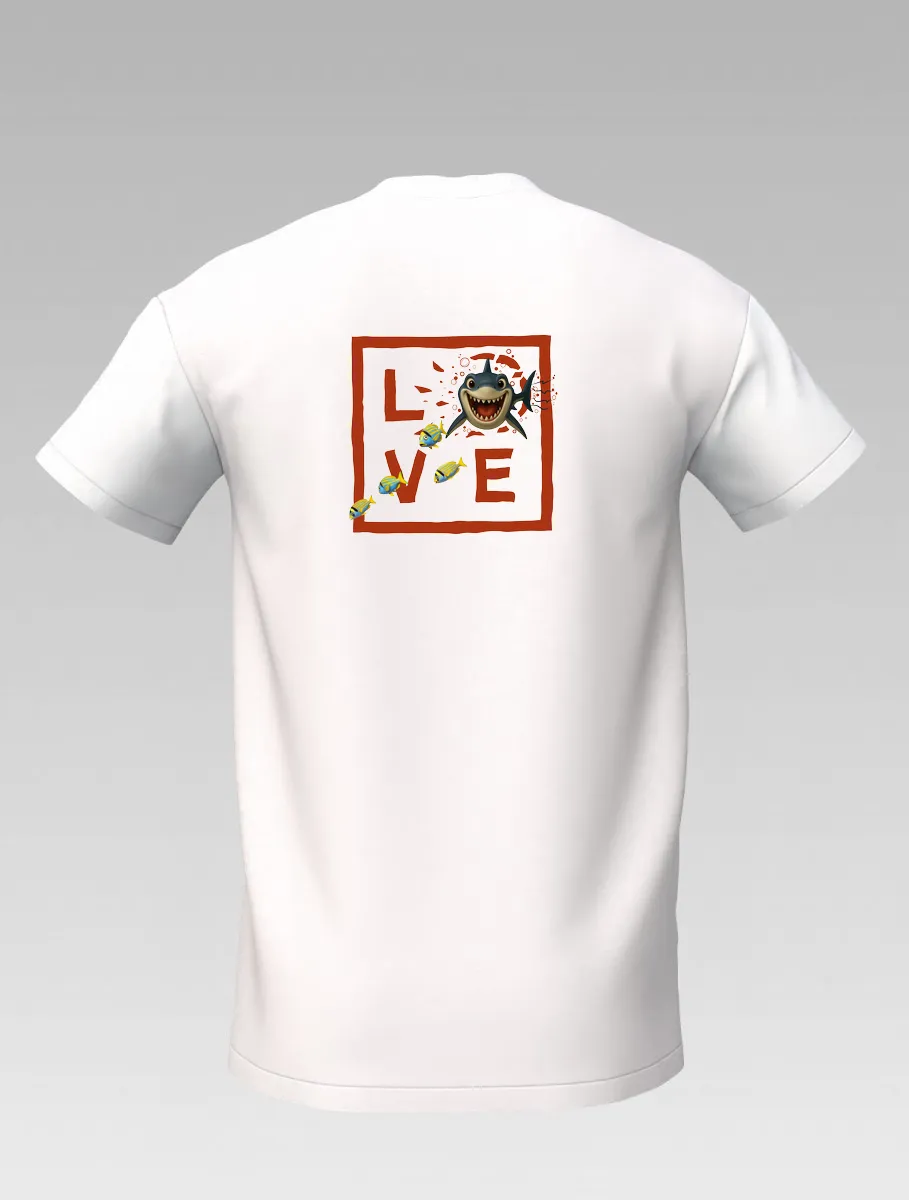 This white T-shirt from St Barth & St Martin, part of the LOVE Shark line, brings the thrill of the ocean to life.