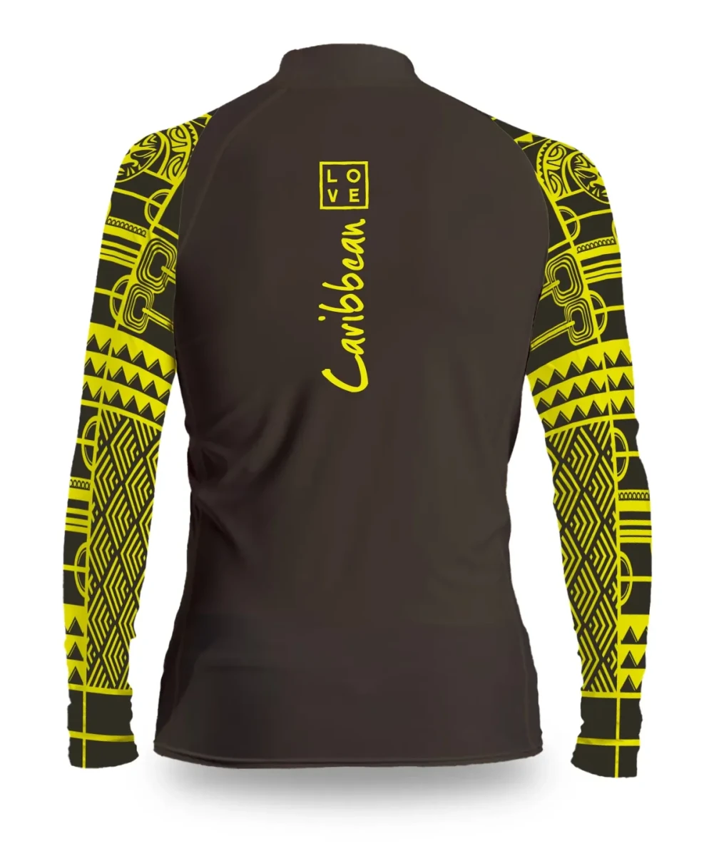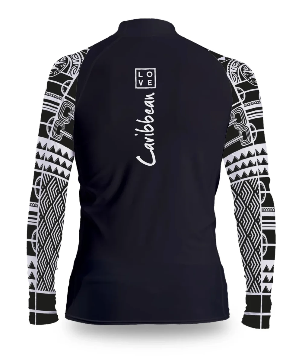 Discover the LOVE Caribbean unisex long-sleeve lycra, designed to support your active lifestyle and moments of relaxation by the sea.