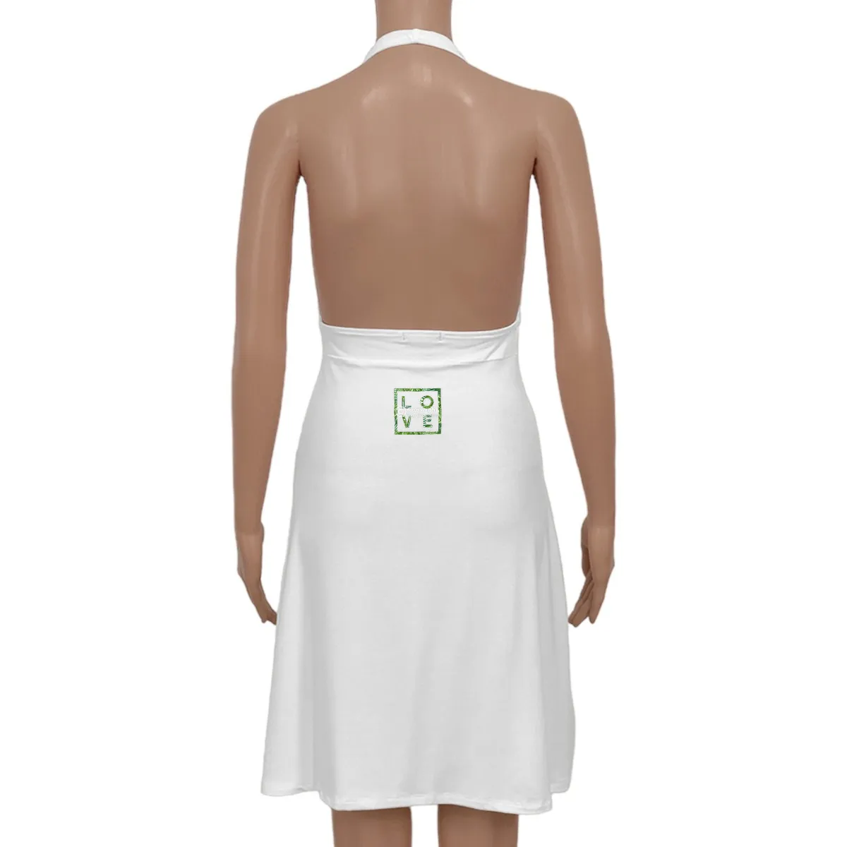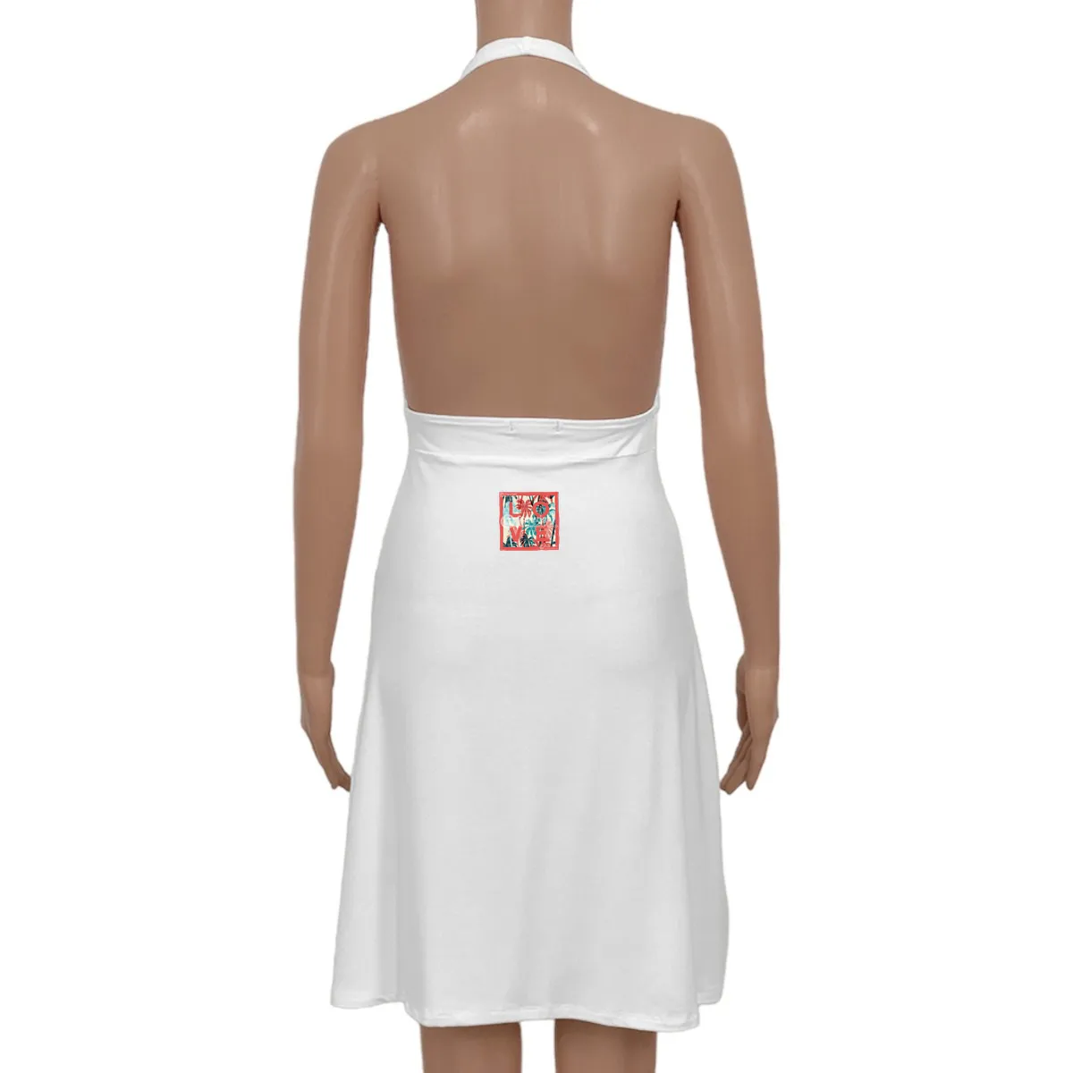 Marilyn Dress – White – Free Size Logo Palm trees Art Flex