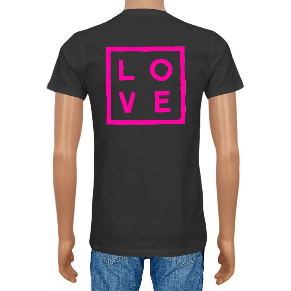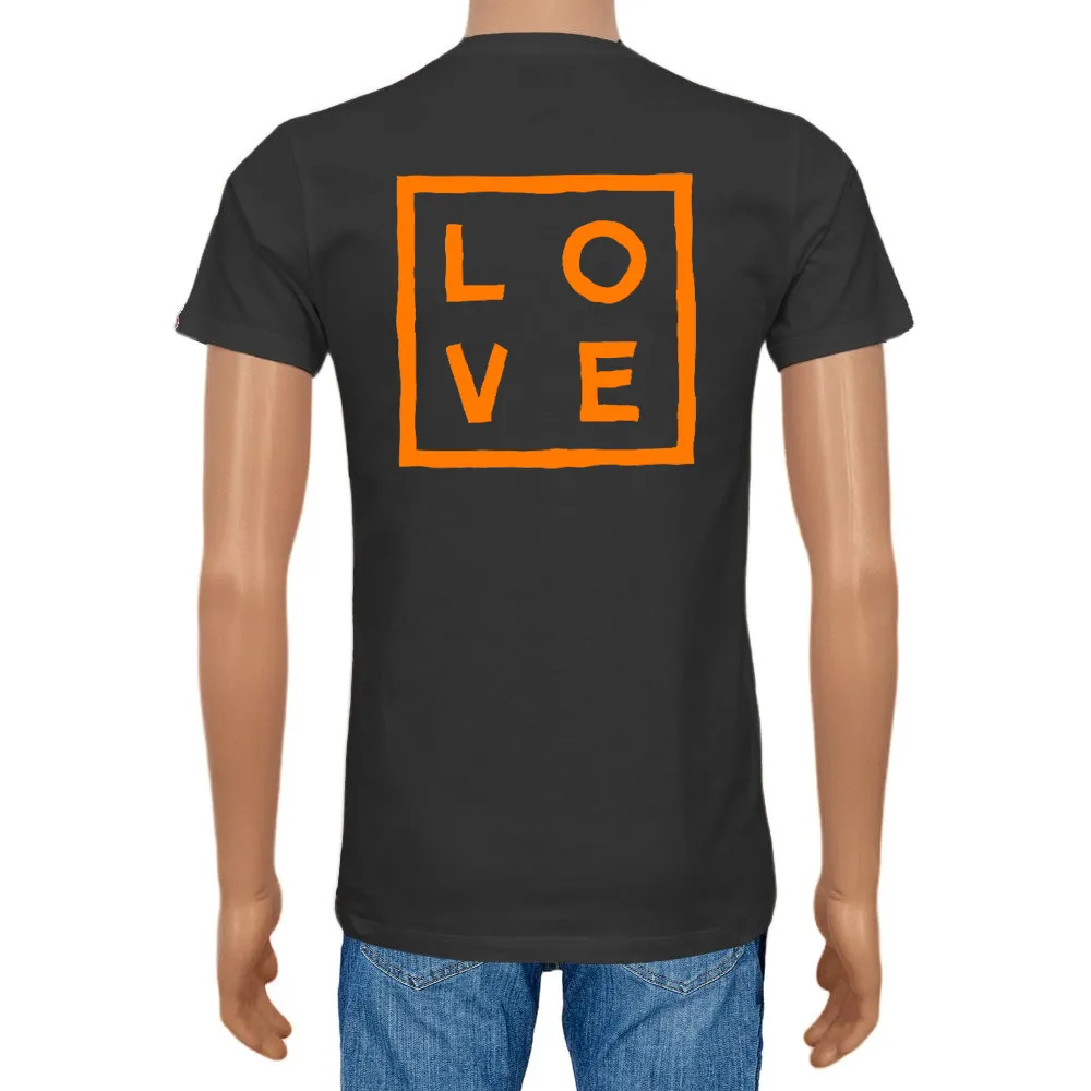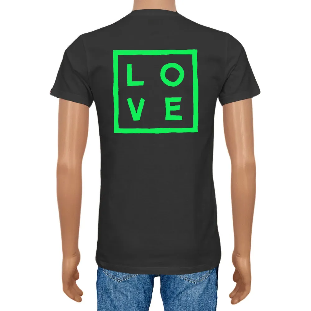 Men's T-shirt Cotton Plain V-Neck Black Logo Fluo - Love Concept Store.