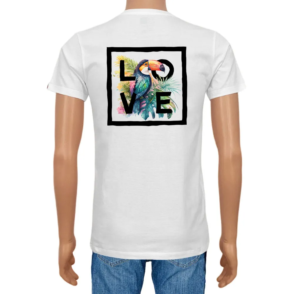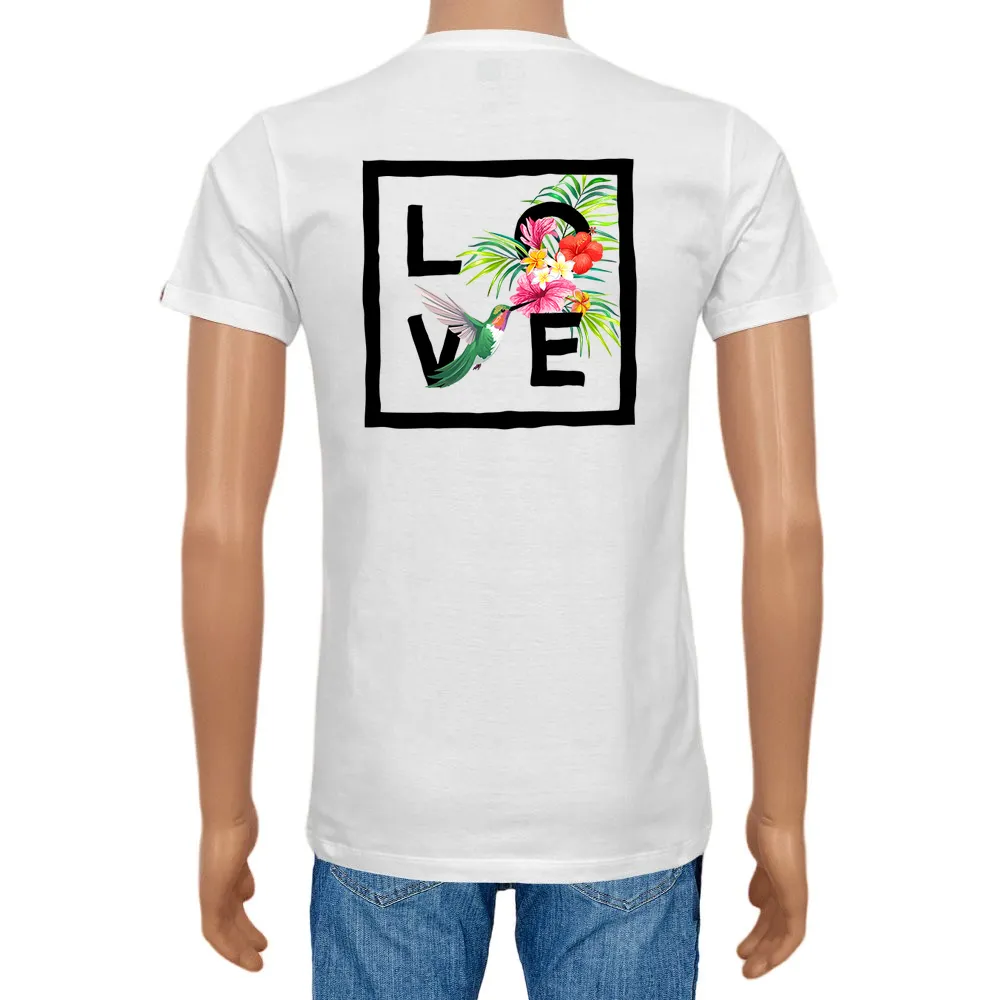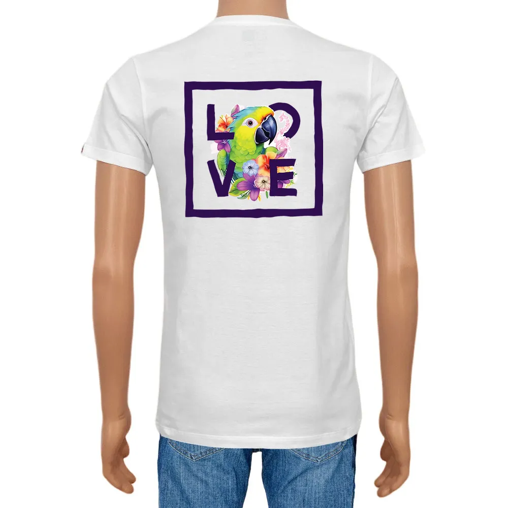 Men's T-shirt Cotton Plain V-Neck White Logo Birds - Love Concept Store