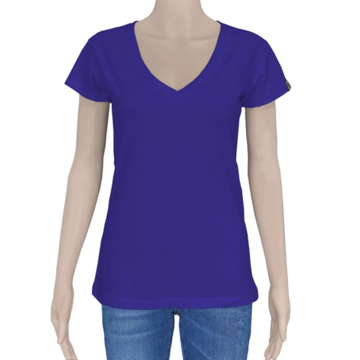 T-shirts - Women - Cotton - Open V – Royal blue - Logo Classic Print