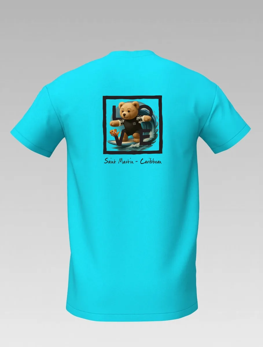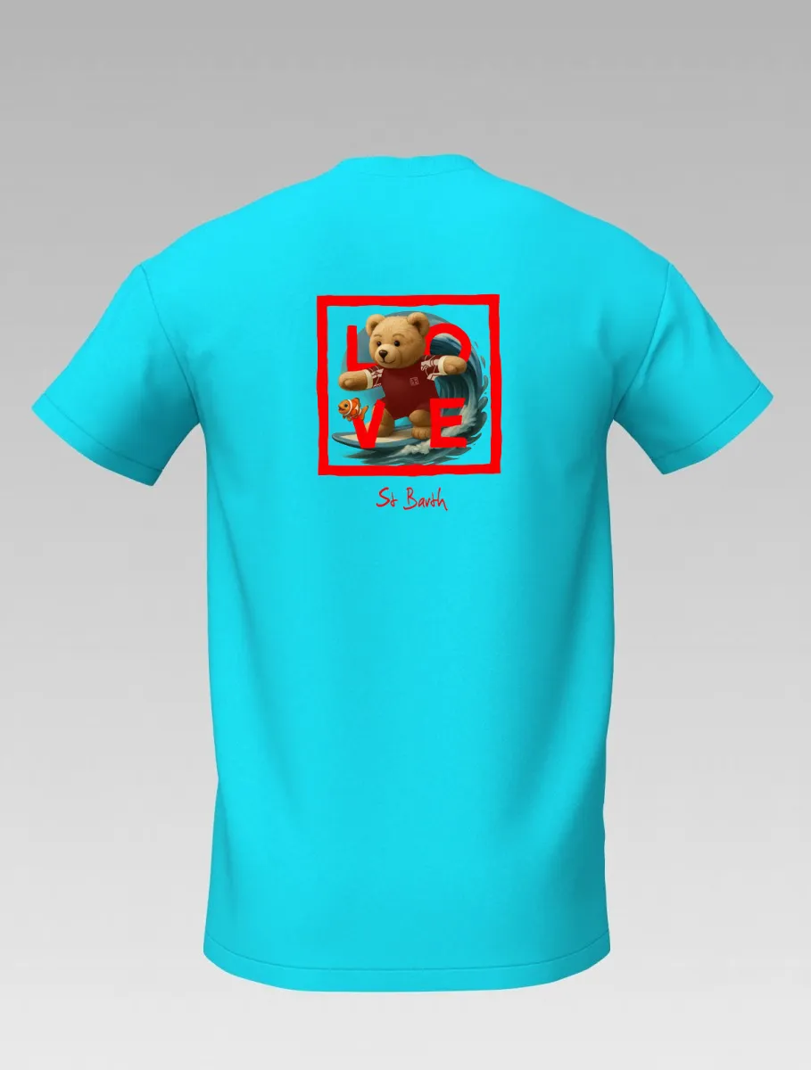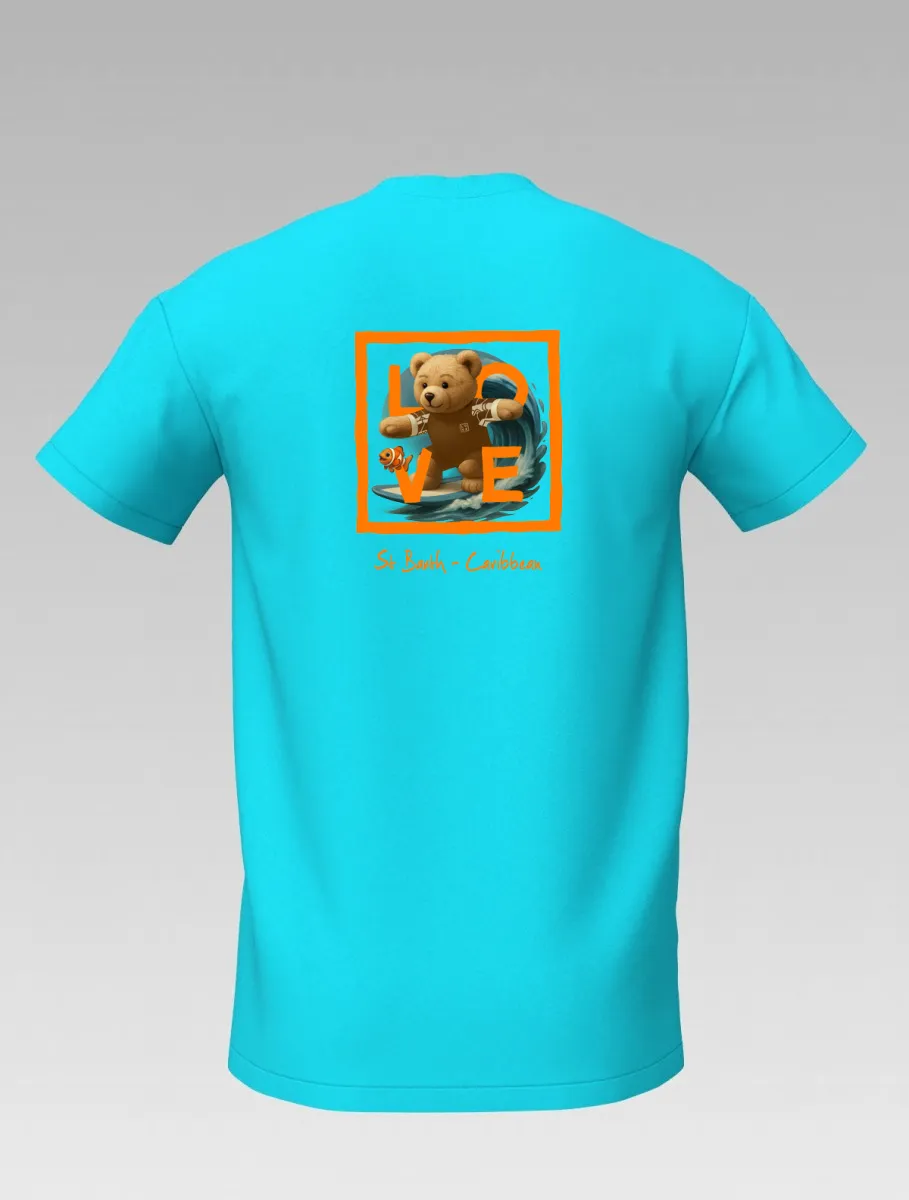 Turquoise Kids’ T-shirt – Surfing Bear – Signature St Barth & St Martin – LOVE Edition