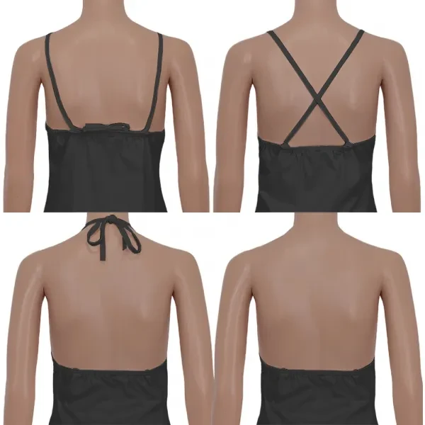 This dress with thin adjustable straps is a must-have for anyone who loves to mix trendiness with ease. The criss-cross straps on the back are fully adjustable, allowing you to personalize the look according to your preferences, just like the front straps. A delicate round neckline completes the design, making it perfect for any summer occasion.