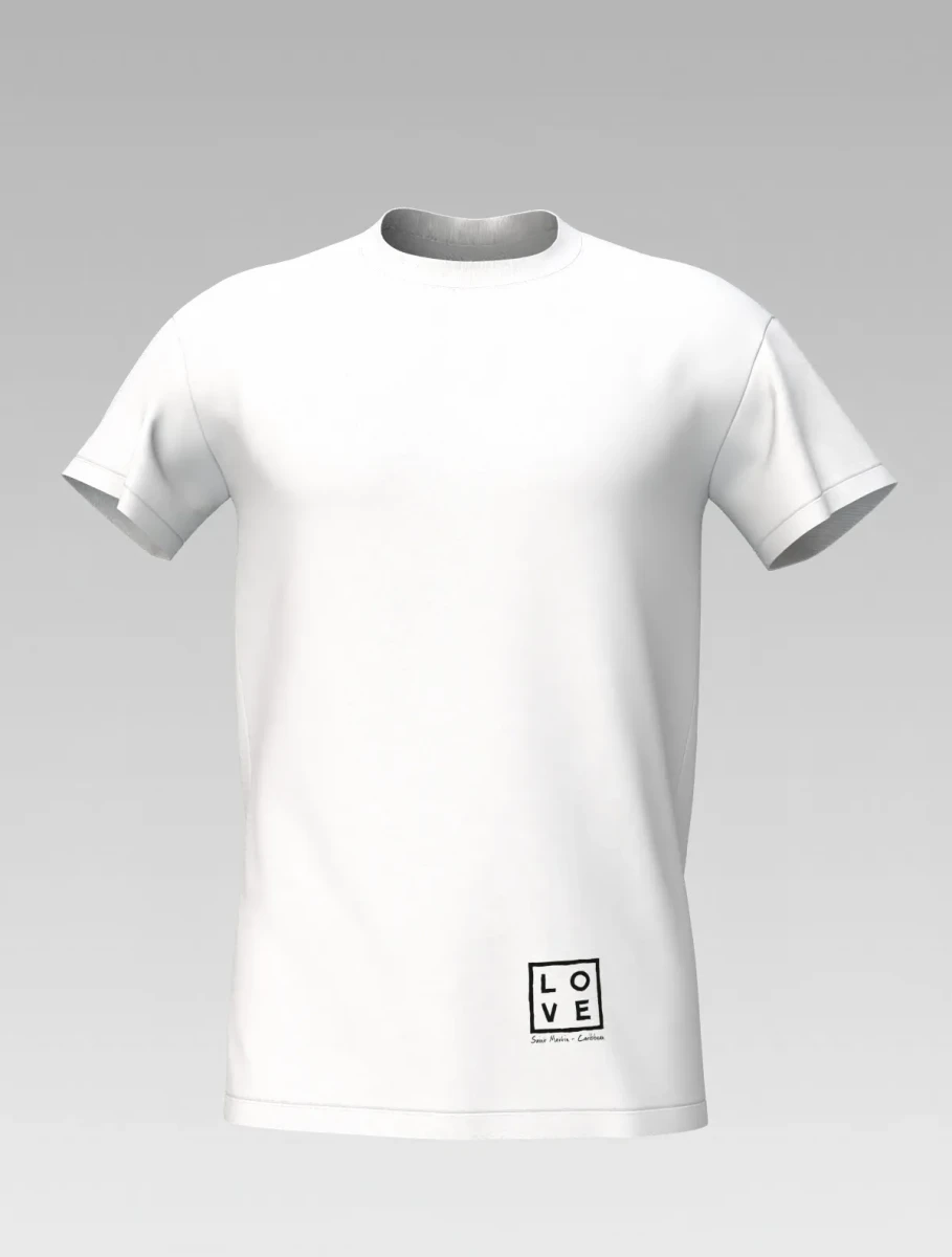 This white T-shirt from St Barth & St Martin, under the LOVE line, captures the essence of summer with its joyful and vibrant design.