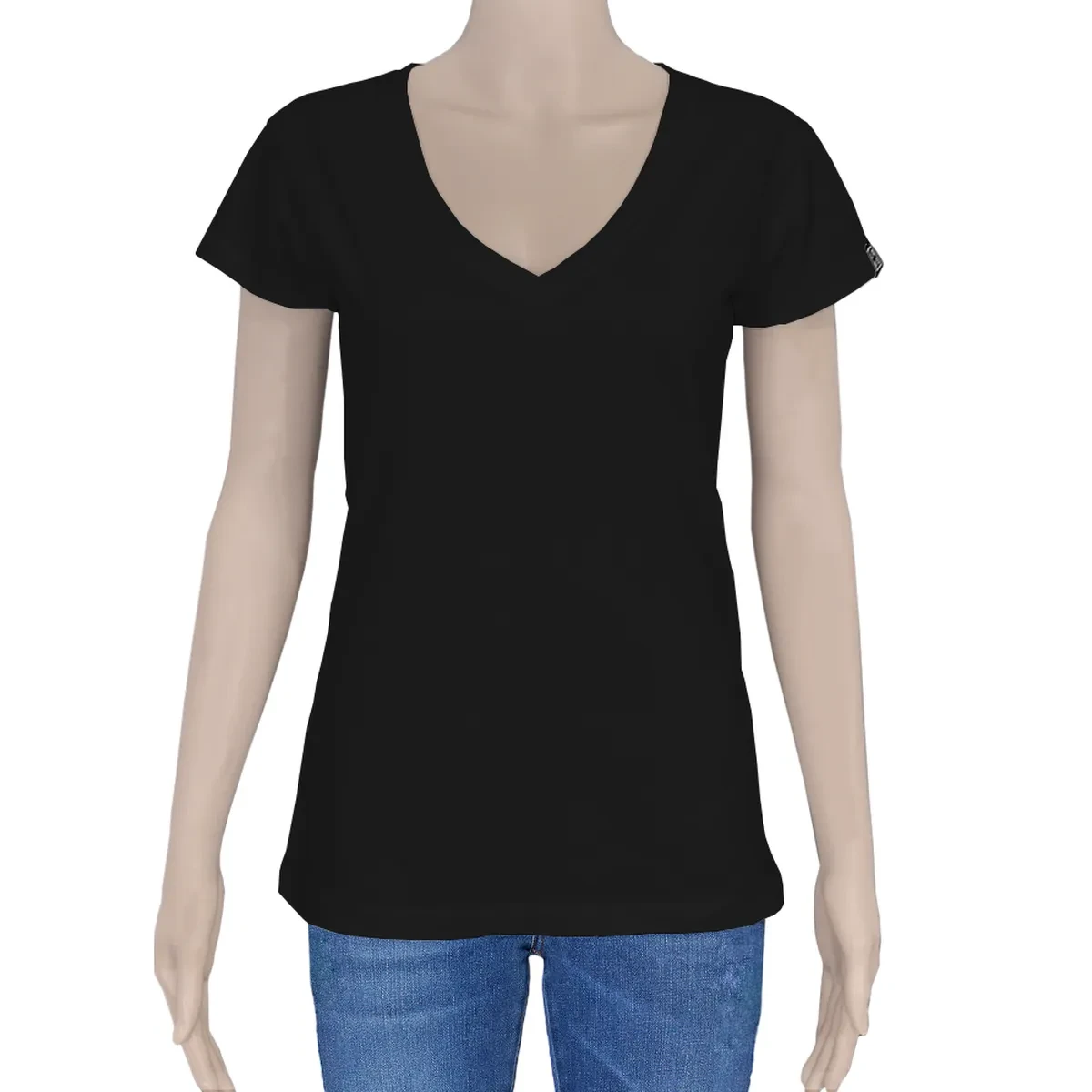 Women's T-shirt – Cotton – Open V – Black - Logo Classic Print
